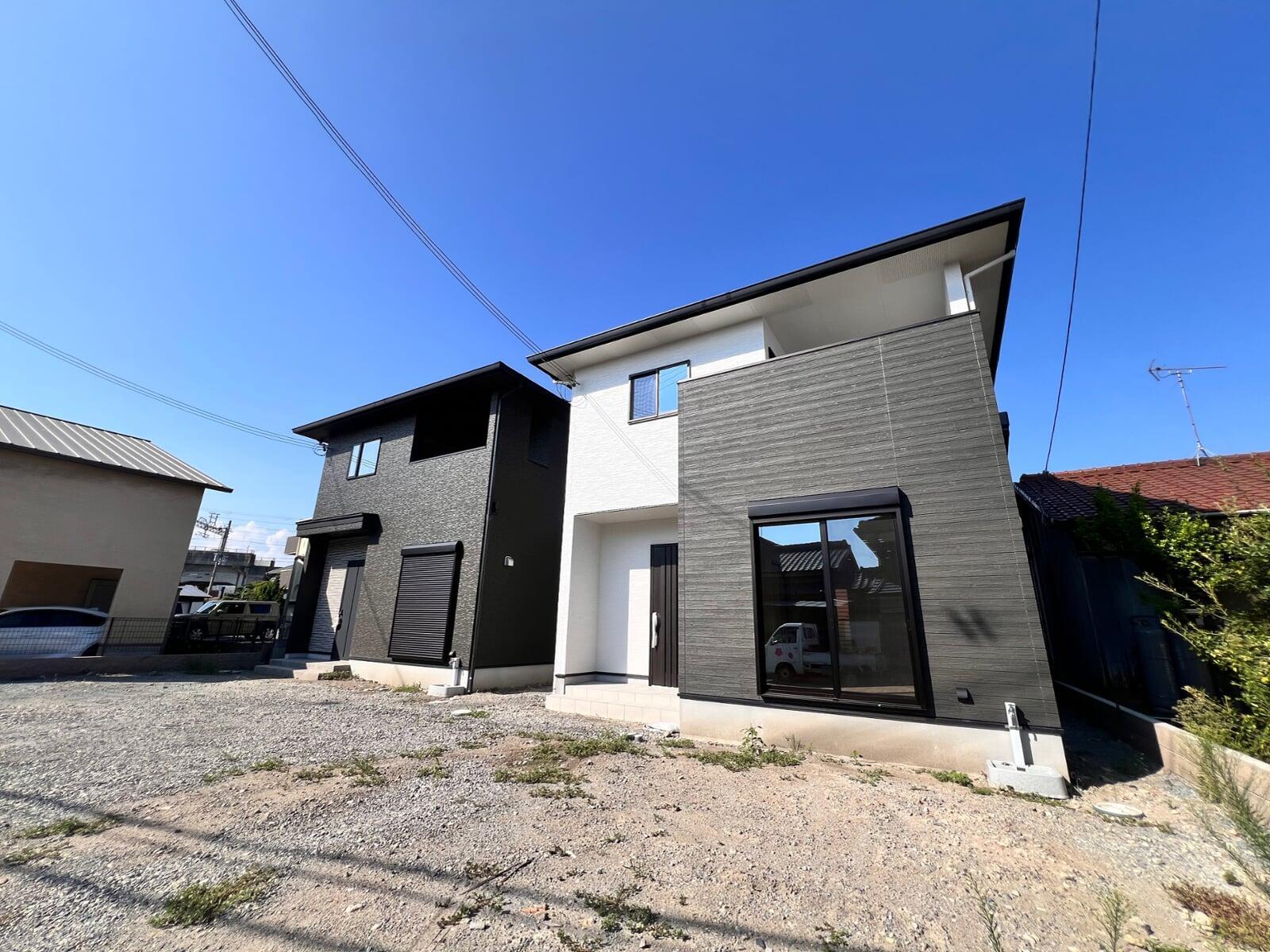所在地:姫路市飾磨区今在家2丁目 / 交通:山陽電鉄「西飾磨」駅 徒歩2分 / 地目:宅地 / 都市計画:市街化区域 / 建物構造:木造2階建 / 駐車場:2台(並列・ハイルーフ対応)/ 間取り:3LDK(パントリー含む収納豊富) / 設備:オール電化、IH、浴室乾燥、オートバス、パントリー / 用途地域:第一種住居専用地域 / 建ぺい率:60% / 引渡:令和7年6月以降 / 建築年月日:令和7年8月 / 建築確認番号:A号地HK24-12608号、B号地HK24-12609号