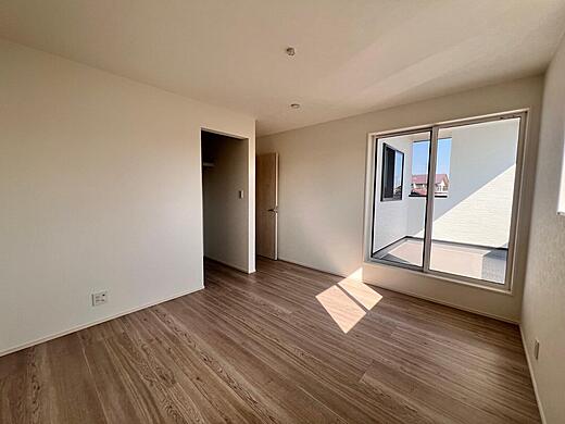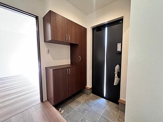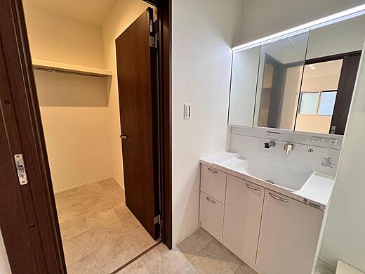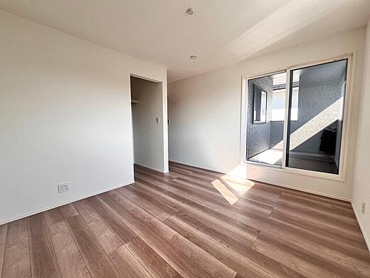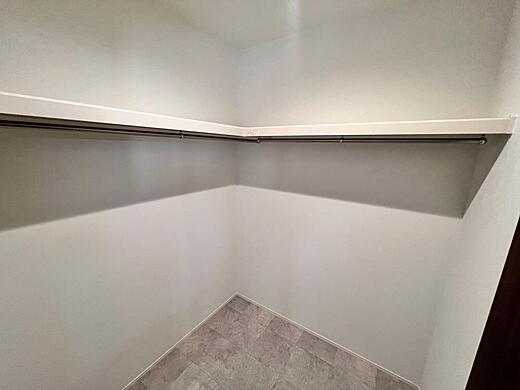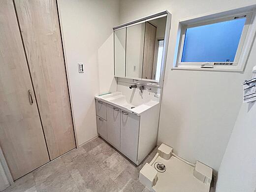 勝手口からすぐに出られる裏庭もあり! より収納力を高めた間取り が特徴 !ランドリースペースにも大きめのクローゼットを備えるなど、暮らしをすっきり整えやすい設計です。